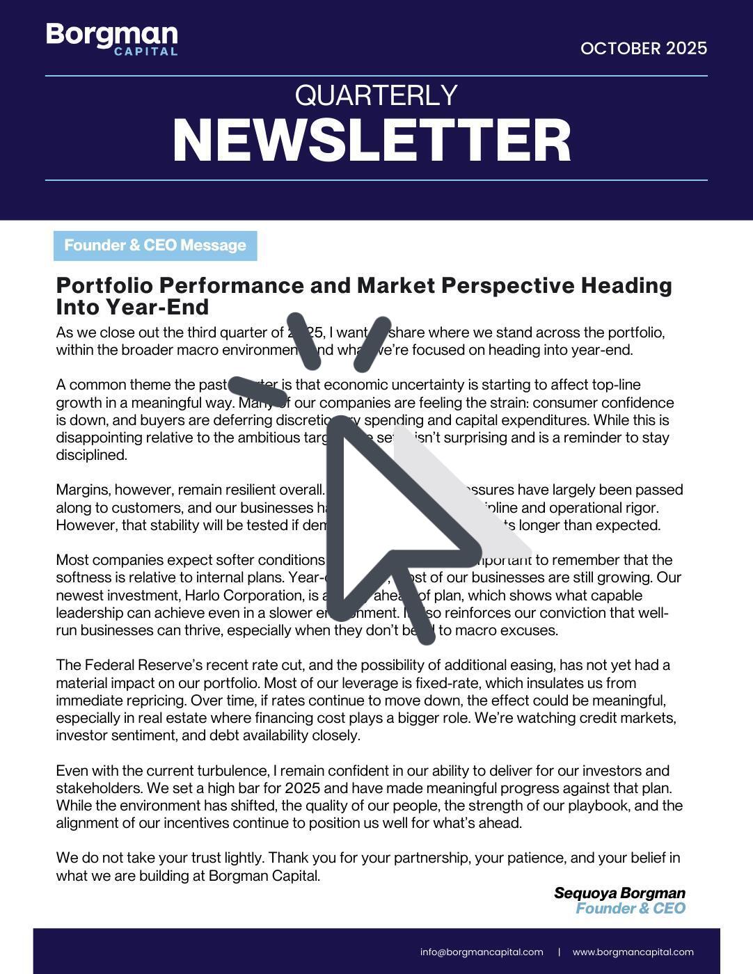 Founder & CEO Update | Sequoya Borgman
